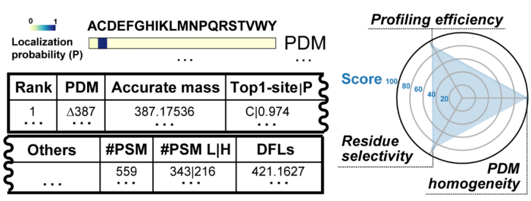 開發兼具高效性和專屬性的探針是化學蛋白質組學領域的核心內容,但極具挑戰。一方面,在生物系統中高度復雜的化學環境可能放大探針的潛在副反應,造成意料之外的蛋白質修飾;另一方面,探針以及探針修飾可能在樣品處理過程中發生“變異”,使數據分析復雜化。因此,有必要在蛋白質組層面上對探針的標記效率與選擇性進行評估。然而,該領域長期以來一直缺乏統一、客觀的評測方法。在此工作中,發展了首個專門用于化學蛋白質組探針評測的開源式計算工具-pChem,此工具可對化學蛋白質組結果進行系統的校正、篩選、排序、同位素修飾,并計算其精確分子量、殘基定位概率、質譜特征丟失等關鍵信息。此外,pChem可為探針開發者提供一種可視化的評測報告,包含標記效率得分、修飾均一性得分和位點選擇性得分。綜上,pChem不僅能夠提升化學蛋白質組探針開發的效率和水平,而且其算法框架的靈活性使其有望被拓展至RNA-蛋白質交聯、藥物代謝激活、內源性新修飾發現等其它應用場景。在《Nature Chemical Biology》同期上線的評述Probing the secrets of probes 中,蘇黎世聯邦理工學院的Alexander Leitner教授高度評價了該工作,指出pChem為全面認識化學探針提供了一種強有力的解決方案。