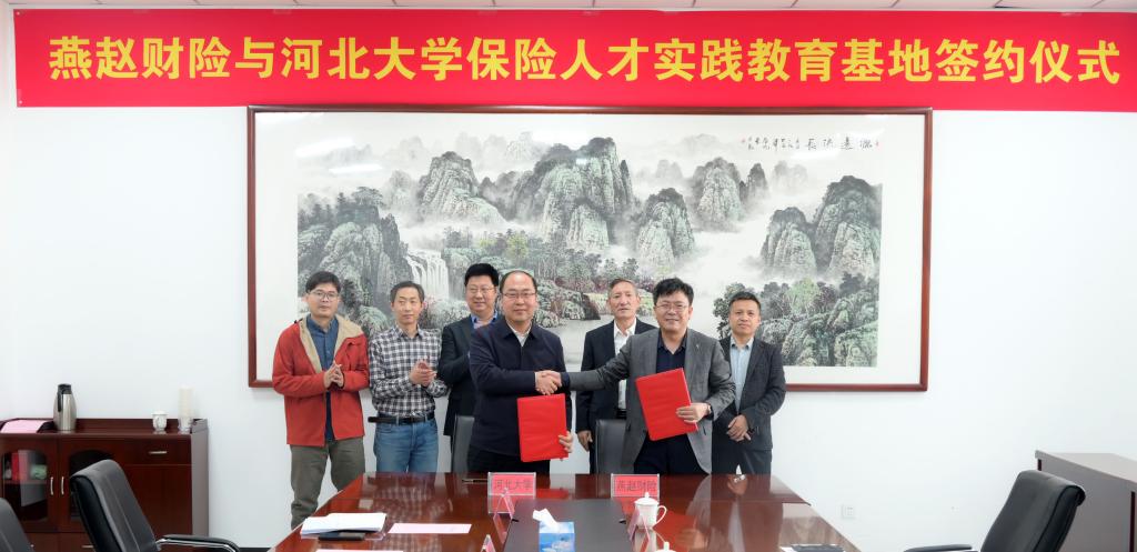 3月31日下午,河北大學(xué)與燕趙財(cái)險(xiǎn)保險(xiǎn)人才實(shí)踐教育基地簽約暨揭牌儀式在石家莊燕趙財(cái)險(xiǎn)總公司舉行。我校黨委常委、副校長(zhǎng)孟慶瑜,燕趙財(cái)險(xiǎn)黨委副書記劉新軍出席儀式并揭牌。