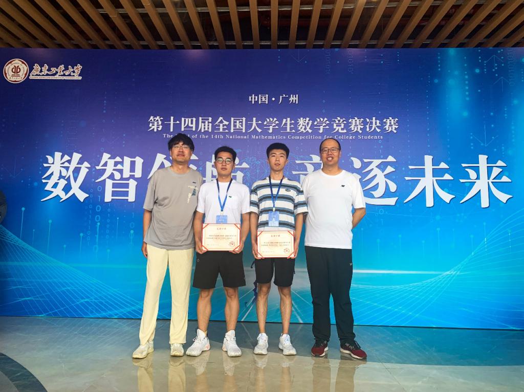 由中國數(shù)學(xué)會主辦的第十四屆全國大學(xué)生數(shù)學(xué)競賽決賽于5月26日至28日在廣東工業(yè)大學(xué)舉行。我校趙澤帥、高佳樂同學(xué)代表河北大學(xué)進入決賽并分別榮獲全國二等獎(非數(shù)學(xué)類)和全國三等獎(數(shù)學(xué)類低年級)的優(yōu)異成績。