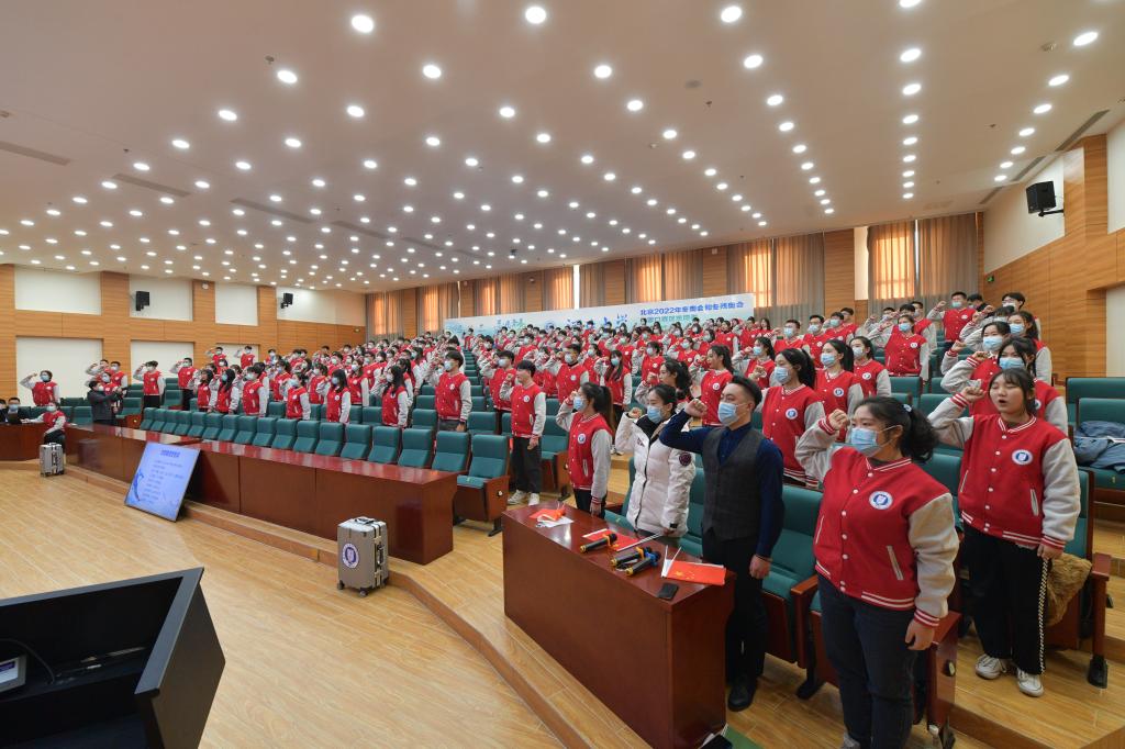 為充分發(fā)揮黨員團員先鋒模范作用,我校成立了冬奧志愿者臨時黨支部和臨時團支部,并在會上分別授旗。激勵助理劉怡宏、媒體運行專業(yè)志愿者扈博今作為代表發(fā)言。會上,志愿者代表朗誦《冰雪頌》,志愿者集體宣誓,齊唱《歌唱祖國》,共同表達對2022年北京冬奧會和冬殘奧會的美好祝愿以及服務(wù)冬奧的決心和信念。